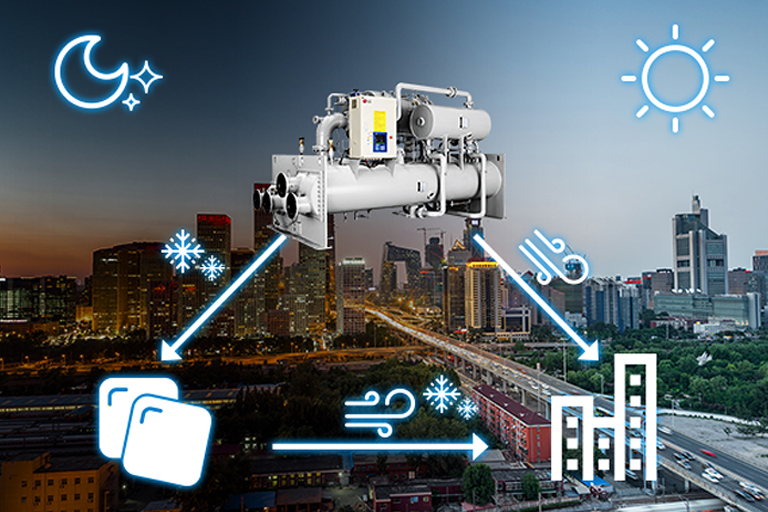 Ice Thermal Storage System cools the indoor area during the day and produces ice throughout the night. This applied solution allows more efficient product installation and energy consumption.